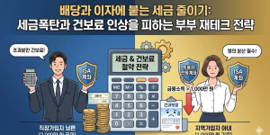 열심히 모은 자산에서 나오는 배당금과 이자, 마냥 기뻐할 수만은 없다. 금융소득(이자+배당)이 일정 금액을 넘어서는 순간, 세금뿐만 아니라 건강보험료라는 복병을 만나게 되기 때문이다. 특히 우리 부부처럼 남편은 직장가입자, 아내는 지역가입자인 경우 …